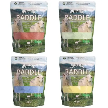The Raddle Marking Powder is an efficient powder used to apply on the ram's chest at tupping time. The container can be resealed after use and it is available in a wide variety of colours.