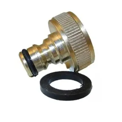 The Brass 3/4" Farmers Tap 7/8" Connector is a durable brass adapter designed to convert a 3/4" farmers-style outdoor tap to a standard hose connection. It provides a secure and reliable link between the tap and hose systems, making it ideal for agricultural, garden, and irrigation use.