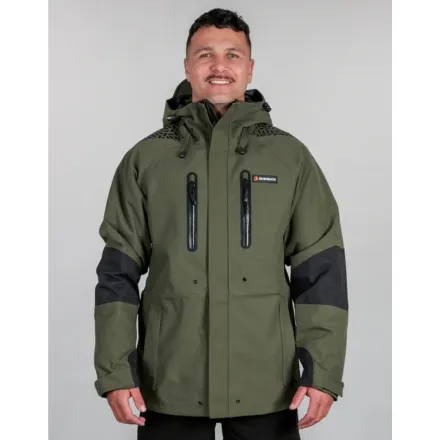Built for harsh conditions, the BushBuck Defender Jacket combines serious weather protection with rugged durability for demanding outdoor use. Its three-layer Stormarc fabric helps keep rain and wind out while letting excess heat and moisture escape.