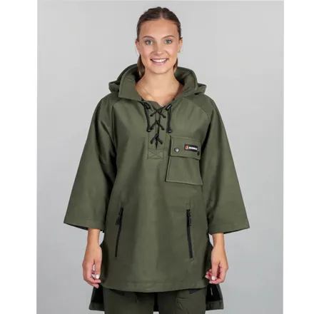 The BushBuck Huntsman Bush Shirt features a wind-resistant construction and tough, abrasion-resistant fabric designed to handle rough terrain and daily wear. Its oversized fit allows for easy layering, while practical elements such as a quarter-zip neck and spacious pockets make it functional for carrying essentials and adjusting ventilation on the go.