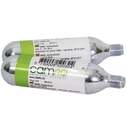 The Camro SafeTrap Automatic CO2 Cartridge (x2) is an original CAMRO CO2 cartridge compatible with the SafeTrapAutomatic. Measuring 25mm length x 50mm width x 114mm height and weighing 0.128 kg, each cartridge contains 16 grams of CO2, which provides approximately 25 shots in the trap. The Camro SafeTrap Automatic CO2 Cartridge (x2) is the perfect replacement when your SafeTrapAutomatic runs out of CO2, ensuring continuous and effective rodent control.