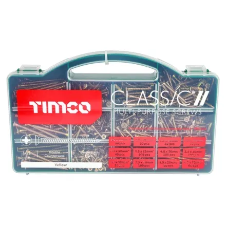 Built for durability and ease of use, the Classic Multi-Purpose Screws Mixed Tray features a double countersunk head to prevent shearing and assist with smooth countersinking. The zinc and yellow finish, paired with patented Gleitmo lubrication, enhances corrosion resistance and insertion efficiency. Whether you're tackling carpentry, furniture assembly, or general construction, this mixed screw tray ensures you always have the right size at hand.