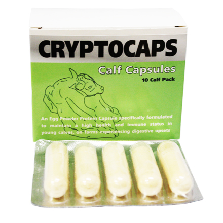Cryptocaps are an Eggpowder protien supplement given to calves in the early hours of life that will help boost the immune system of a new born calf and help protect against infections such as cryptospiridium.