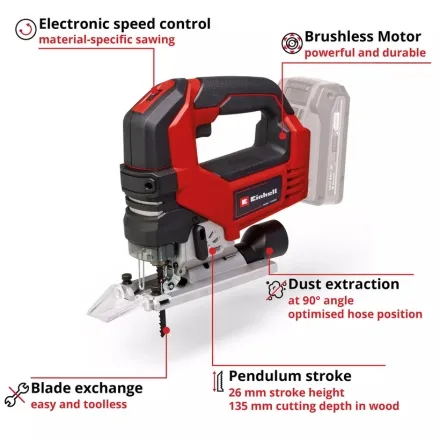 Features of the Einhell 18V 135mm Professional Cordless Jig Saw (Body only)