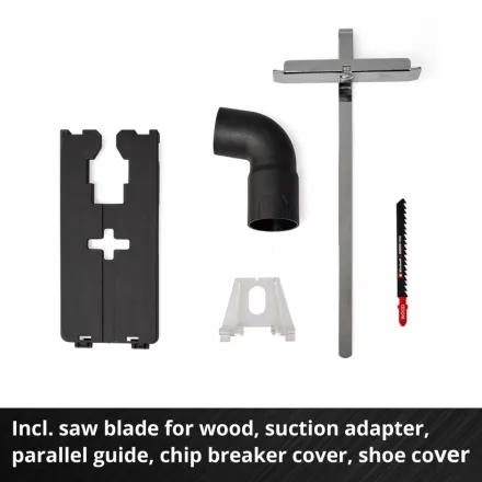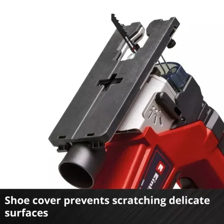 As a member of the Power X-Change family, the Einhell 18V 135mm Professional Cordless Jig Saw (Body only) is compatible with all Power X-Change batteries and chargers. Features include toolless saw blade holder, dust blow-off function, LED light for illuminating the cutting area, cutting line indicator, sturdy aluminium base plate, integrated plastic shoe cover, parallel guide, splinter guard, and includes one jigsaw blade for wood.