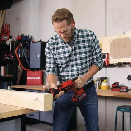 As a member of the Power X-Change family, the Einhell 18V 200mm Professional Cordless All Purpose Saw is compatible with all Power X-Change batteries (2.5Ah or higher recommended for optimal results). Features include adjustable saw shoe for optimum blade efficiency, tool-free blade change for quick use, ergonomic softgrip surfaces, and includes a high-quality Einhell wood blade.