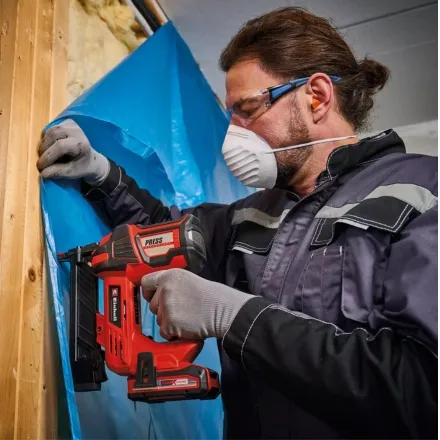 The Einhell 18V Professional Cordless Stapler (Body only) offers exceptional versatility with switchable single and series triggering modes. The robust gearbox and large magazine hold up to 100 staples with a convenient level indicator, while tool-free depth adjustment ensures precise staple insertion for professional results every time.