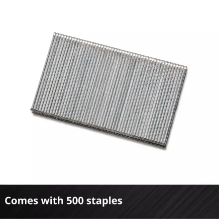 As a member of the Power X-Change family, the Einhell 18V Professional Cordless Stapler (Body only) is compatible with all Power X-Change batteries. Features include push-button magazine opening, safety nose to prevent accidental triggering, two LEDs for optimal work area illumination, ergonomic Softgrip surfaces, rubberised side surfaces to protect workpieces, practical belt clip, and includes 500 staples. Suitable for 10-40mm long and 5.7mm wide staples.