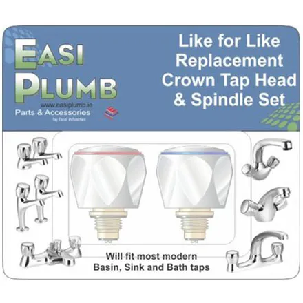 The Easi Plumb Replacement Crown Tap Heads are designed to control indoor water flow, featuring an attractive crown pattern and easy-grip handles.