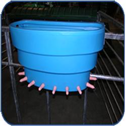 TheJFC Six Teat Reservoir Calf Feeder is fitted with an inverted or non-return valve teat to deliver milk by gravity feed. The teats stimulate natural sucking action which allows milk to be administered to the calf at a most favourable rate. Each feeder is fitted with two solid hooks for mounting on a standard gate or fence making them extremely flexible for use around the farm. The feeder is ideal for use with the JFC Calf Hutch Systems. For sanitation purposes the feeder is designed with minimum openings making them easy to clean. When not in use they can be stored upside down which aids draining and drying. They can be nested for easy storage and transport. Available as reservoir or compartment feeders. The JFC Six Teat Reservoir Calf Feeder provides an efficient method of supplying milk to a calf. It can be fitted with either a Starter or EazyFlow teat. It is fitted with two plastic hooks to provide extra security.