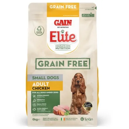 The Gain Elite Grain Free Small Dog Chicken Adult Dog Food is a outstanding pet food formulated to satisfy the nutritional needs of small dogs under 20kg, with a complete grain-free diet.
