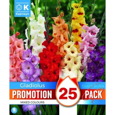 Gladiolus Mixed Colours X25 12/14 is a vibrant bulbous perennial, ideal for gardeners looking to add height and colour to borders, beds, and containers.