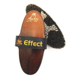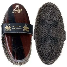 The HAAS Welsh - Silver is a soft horsehair brush designed for sensitive horses, providing gentle yet effective coat cleaning.