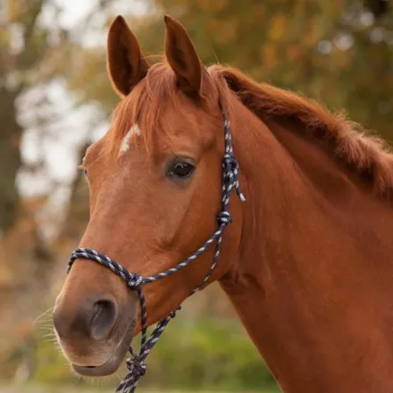 The Knotted Halter - Black/White is a premium-quality rope halter designed for versatility, training, and everyday handling. The Knotted Halter - Black/White provides reliable control while maintaining a lightweight and natural feel for the horse.