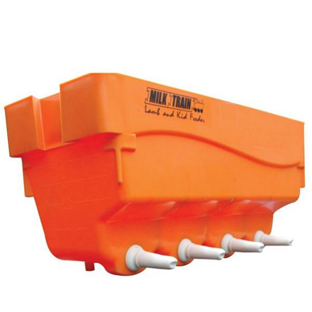 TheLamb Feeder Milk Train is a four place milk train suitable for lambs and kids. It is designed to allow you to hang it off a gate, fence with rail hooks or wall brackets meaning that you can leave the lambs to feed while you get on with the rest your days work, saving you valuable time. The Lamb Feeder Milk Train has "Little Softy" no-leak teats and has a 4ltr total capacity. Each compartment can hold 750ml