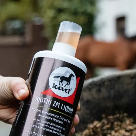 By helping balance the diet and address potential nutrient deficiencies, Leovet Biotin ZM Liquid - 1000ml supports the development of keratin and cellular bonding substances for stronger, more resilient hooves.