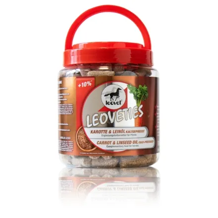 Keep Leovet Carrot & Linseed Treats - 1100g in the stable for quick rewarding after training, grooming, or simply as a wholesome treat. The mouse-proof tub helps keep contents protected and ready whenever your horse deserves a little extra encouragement.