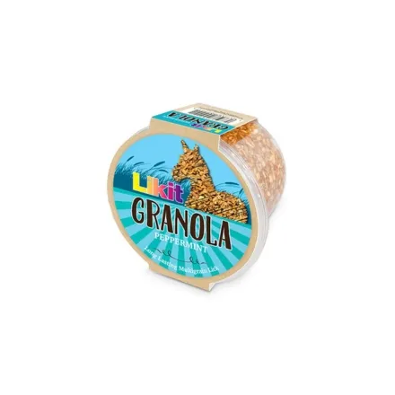 A long-lasting granola horse lick packed with grains, designed for use in Likit Holders and Boredom Busters.