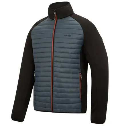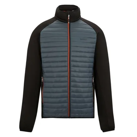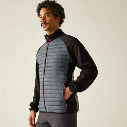 Designed for performance and practicality, the Men's Clumber Hybrid Jacket | Storm Grey Black is easily compressible for pack-away convenience and includes zipped pockets, stretch binding and an inner zip guard for all-day comfort during high-energy activities.