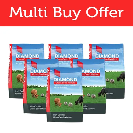 Diamond Heavy Land With Timothy grass seed is recommended to be used on land that is wet, peaty and has heavy textured soil. All Diamond brand grass seeds have been tested with Teagasc for the past five years to ensure maximum results. It is recommended that Diamond Heavy Land With Timothy grass seed is sown at the rate of 14 - 16 kg per acre of land.
