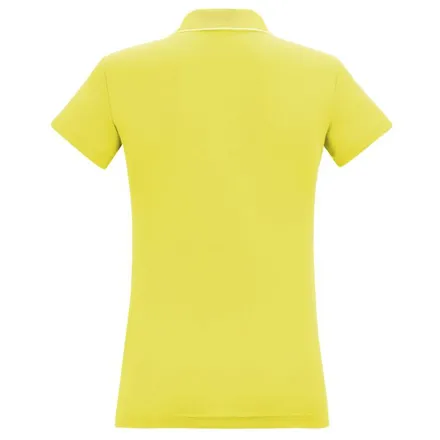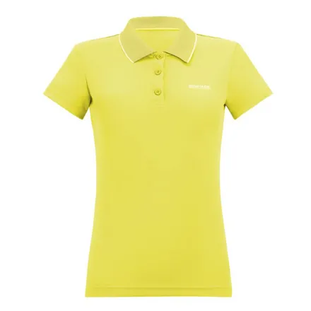 Regatta Maverick V Women's Polo Shirt Canary Yellow - is a shirt that offers both comfort and performance. Crafted from 100% polyester fabric, it provides excellent sweat-wicking properties, keeping you dry and comfortable throughout the day. The quick-drying material ensures you stay fresh, even during active moments. Designed with a classic three-button fastening, along with lightly ribbed collar and cuffs, this polo combines a sleek look with practical features, making it a great choice for both casual and active wear.