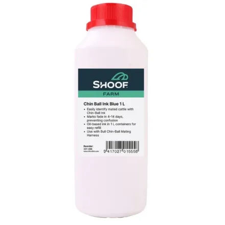 The Shoof Chinball Harness Fluid is an oil based coloured ink designed for use with a Chinball harness, helping create clear and visible livestock marks. Available in blue, green, magenta, orange, and yellow, it gives you practical colour options for everyday farm use.