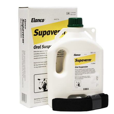 Supaverm is a combination of the salicylanilide closantel and the benzimidazole mebendazole. Closantel is highly