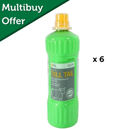The Tell Tail Brush On Tail Paint 1L Green X 6 is an oil based fluorescent marking paint designed for heat detection in cattle. Its vivid green colour makes applied markings easy to see, helping you monitor herd activity with confidence.