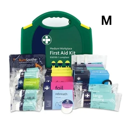 The Timco Workplace First Aid Kit British Standard Compliant is designed to meet the latest workplace safety requirements with BS8599-1:2019 compliance, reflecting changes in both workplace practice and risks to be demonstrably more 'fit for purpose' in today's environment compared to old HSE kits. Available in three sizes to suit different workplace requirements, these professional first aid kits come in durable and stylish polypropylene cases that are wall mountable with integrated brackets for easy access during emergencies. The Timco Workplace First Aid Kit British Standard Compliant provides comprehensive medical supplies for both low-risk and high-risk workplace environments.