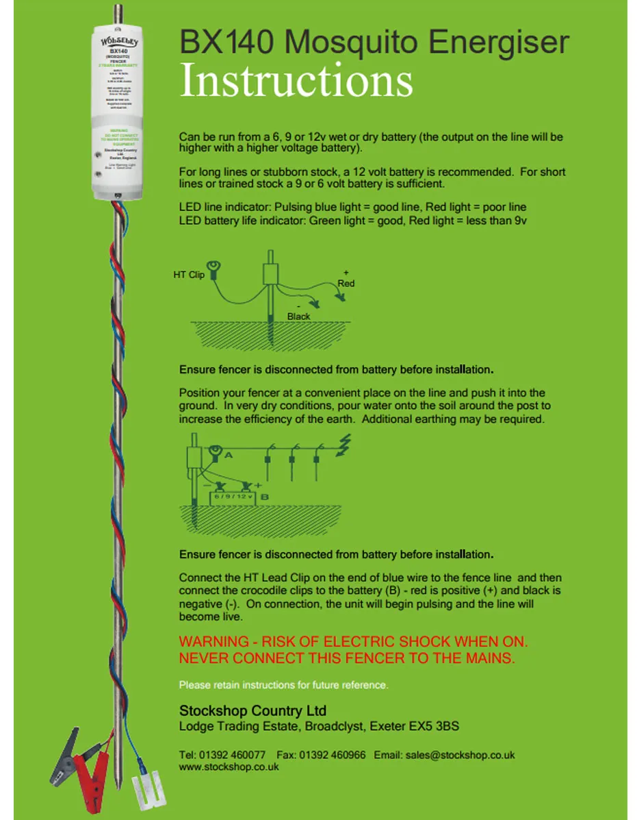 Specifications of the Mosquito Battery Fencer |