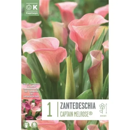 Zantedeschia Captain Melrose X1 14/16 is a stunning summer-flowering bulb that adds elegance and charm to any garden.